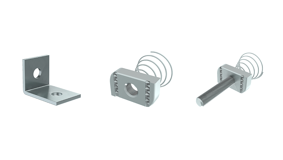 Работает в паре с STRUT-гайкой. Пружина стабилизирует болт в перфорации, упрощая монтаж одной рукой.